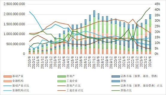 我国基础设施投资在上半年显示复苏暖意,增长5.4%。信托资金投向基础产业的规模为1.63万亿元,在资金信托总规模中占比8.19%,较2023年4季度末增加1171.60亿元,占比小幅下降0.54%,与2023年同期相比,规模增加1217.37亿元,同比增长8.05%,占比下降1.45%。