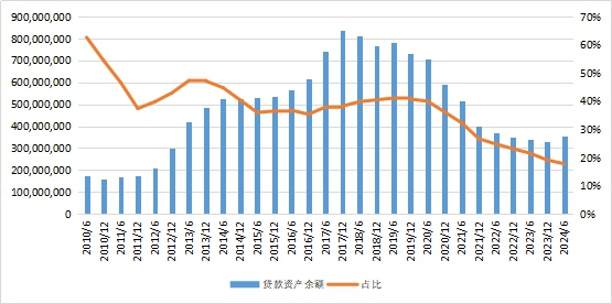 在信托资金运用方式上,信托贷款规模占比持续走低。2024年2季度末,信托贷款规模为3.55万亿元,在资金信托总规模中占比17.78%,比2023年4季度末增加2236.03亿元,占比则下降1.36%。与2023年同期相比,信托贷款规模增加1702.16亿元,同比增长5.04%,占比则下降3.74%。