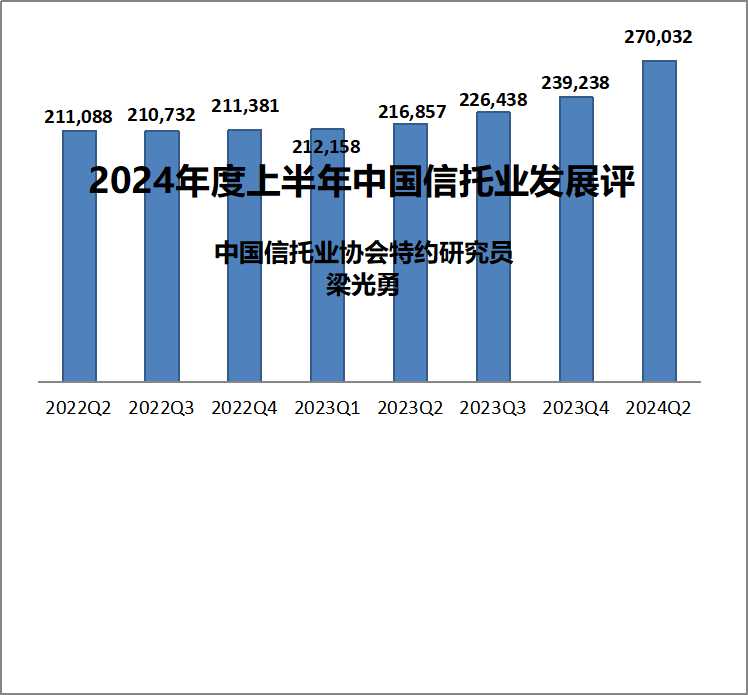 2024年上半年,我国国民经济总体运行平稳、稳中有进,国内生产总值(GDP)61.7万亿元,同比增长5.0%。动能转换提速,新的消费模式和消费场景不断涌现,绿色发展理念和实效明显提升,经济转型升级和高质量发展呈现向好态势。信托业坚持以习近平新时代中国特色社会主义思想为指导,认真落实金融监管总局党委决策部署,加快回归信托本源,切实服务实体经济、服务人民美好生活,坚持走具有中国特色的高质量发展道路。